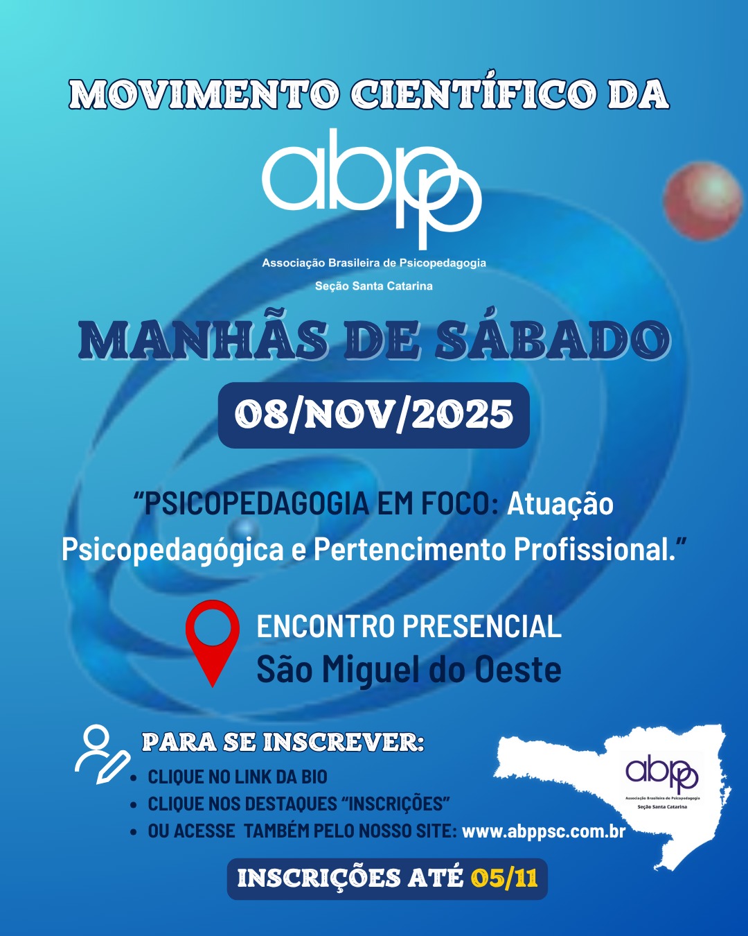 #ABPpSC #ManhãsDeSábado #PsicopedagogiaSC #MovimentoCientífico #FormaçãoContinuada #PertencimentoProfissional