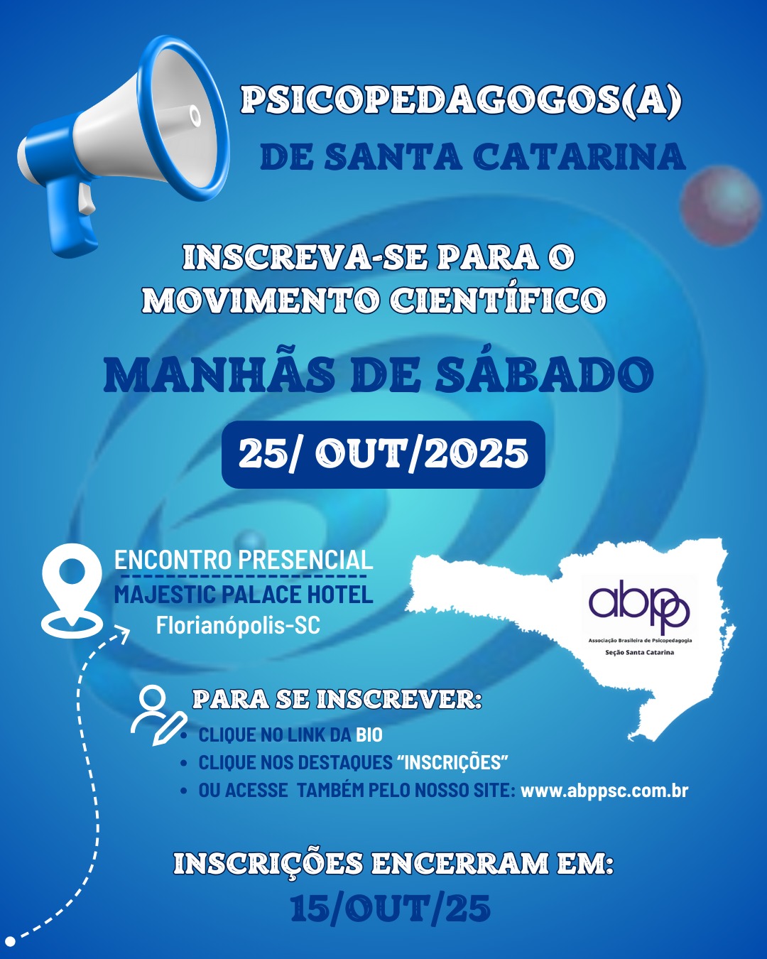 Inscrições abertas até 15/10 pelo link da BIO, no Destaque "Inscrições" ou também em nosso site: www.abppsc.com.br