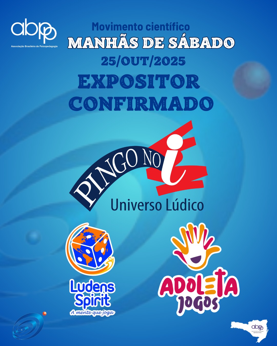 #ABPpSC #ManhãsDeSábado #ExpositorConfirmado #PingoNoI #JogosLúdicos #MateriaisPedagógicos #EventoABPpSC