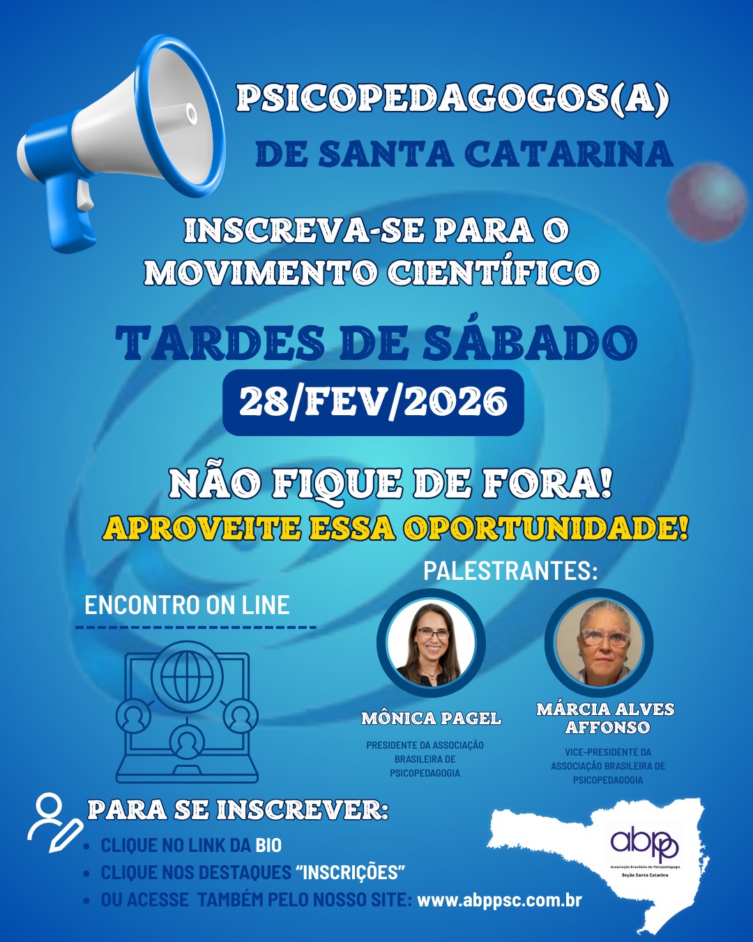 #ABPpSC #Psicopedagogia #MovimentoCientífico #FormaçãoContinuada #Psicopedagogos #Educação #CiênciaNaPrática